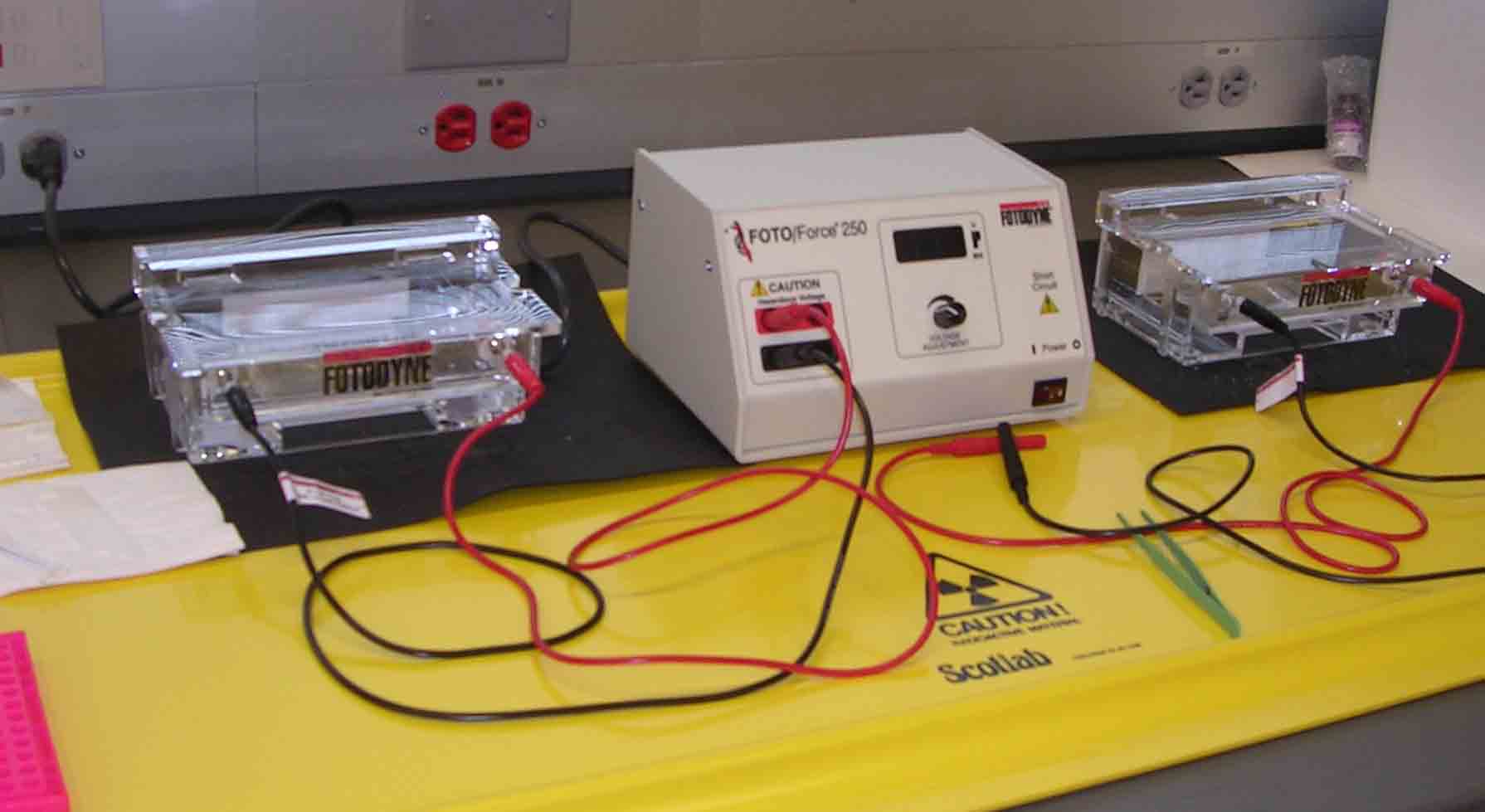 Ez a művelet úgy történik, hogy mivel tudjuk, hogy a DNS töltése negatív és ezért a pozitív irányba fog futni, ezért ennek megfelelő elrendezésben fedjük le az elektromos csatlakozókat tartalmazó fedővel a kádat és azokat csatlakoztatjuk is hozzá illetve a tápegységhez. A feszültség, futtatási idő változtatható a mintánk függvényében.